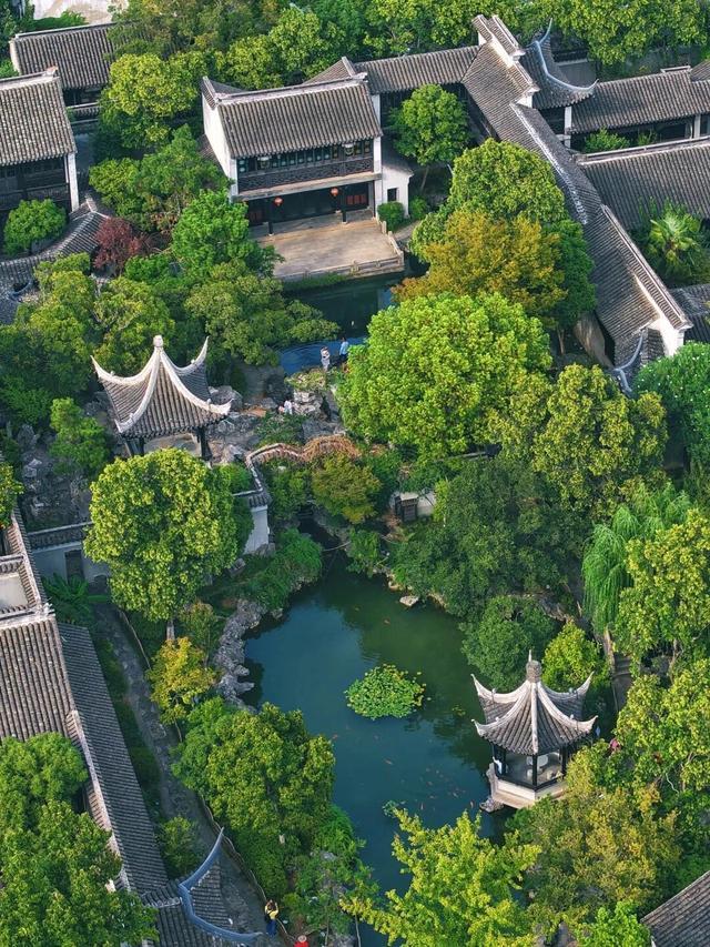 古松园的名字,源于一株五百多岁的罗汉松。这棵树就静立在园子中央,枝干虬曲,苍劲有力,像一位饱经沧桑的老人,沉默地守着这片园子,看尽了世事变迁。园里还藏着一位“新住户”——苏绣大师姚建萍的艺术馆。那些绣品细腻得惊人,凑近了看,一根丝线能劈成几十股,绣出的猫儿眼睛亮晶晶的,仿佛下一秒就要从绣布上跳下来。