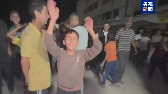 △哈马斯提交对“20点计划”的回应后,加沙民众走上街头进行庆祝