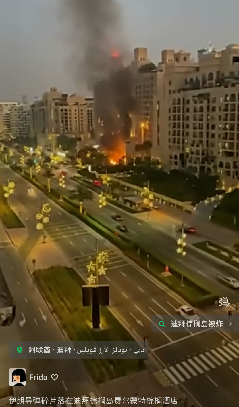 在伊朗对美以军事行动进行回击后,阿联酋多地受到波及。
